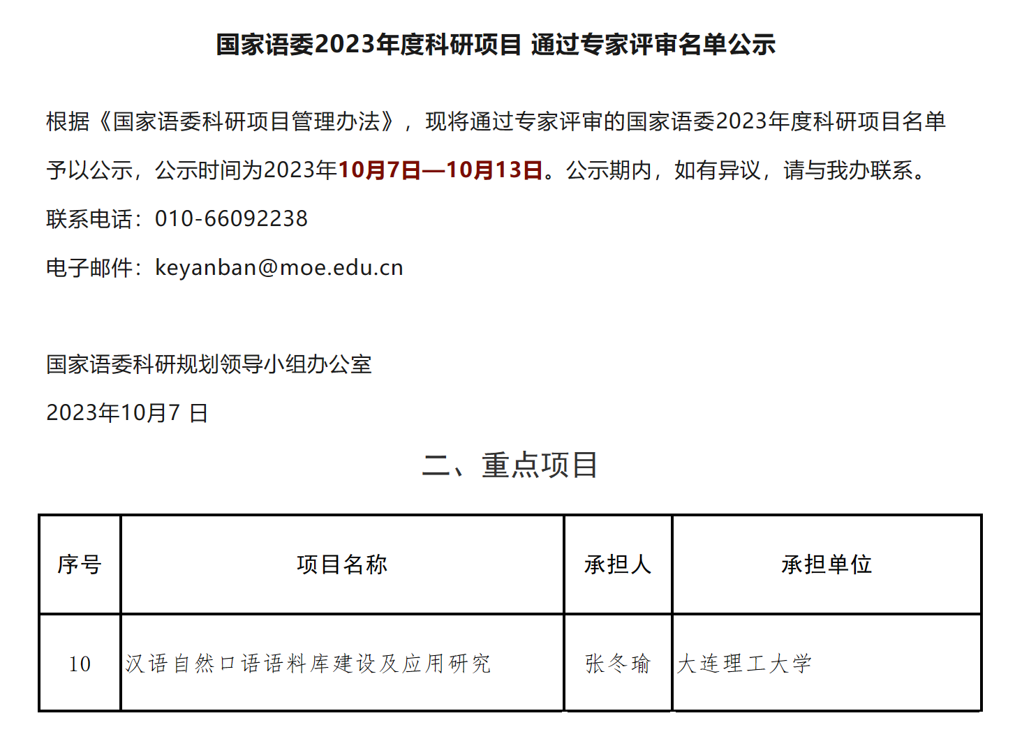 近日,国家语委科研规划领导小组办公室发布了《国家语委科研规划领导小组办公室》,张冬瑜老师申报的项目《汉语自然口语语料库建设及应用研究》获批为重点项目。