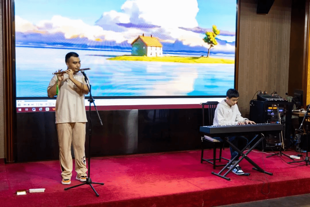在新年联欢会上,同学们的演出精彩纷呈,令人目不暇接。有令人捧腹大笑的小品、有婀娜多姿的舞蹈、有余音绕梁的器乐演奏、有动听的歌曲,更有带有“讽刺”意味的诗朗诵。节目之间穿插了各类游戏和抽奖,大家兴趣盎然,积极参与,欢声笑语充满整个大厅。