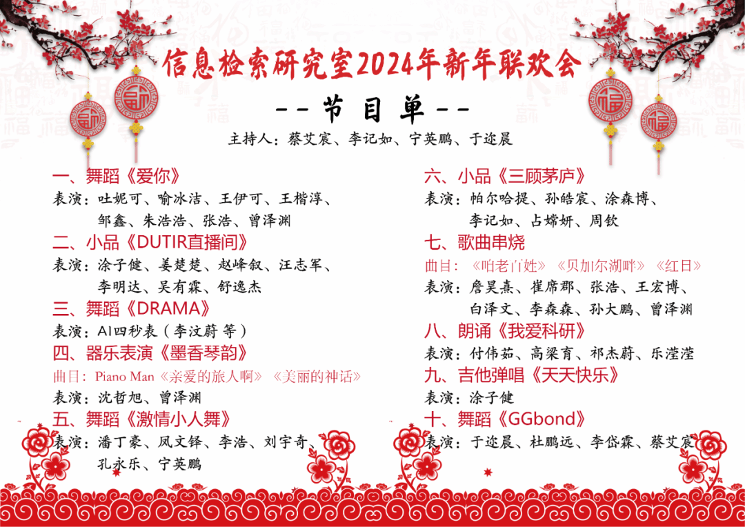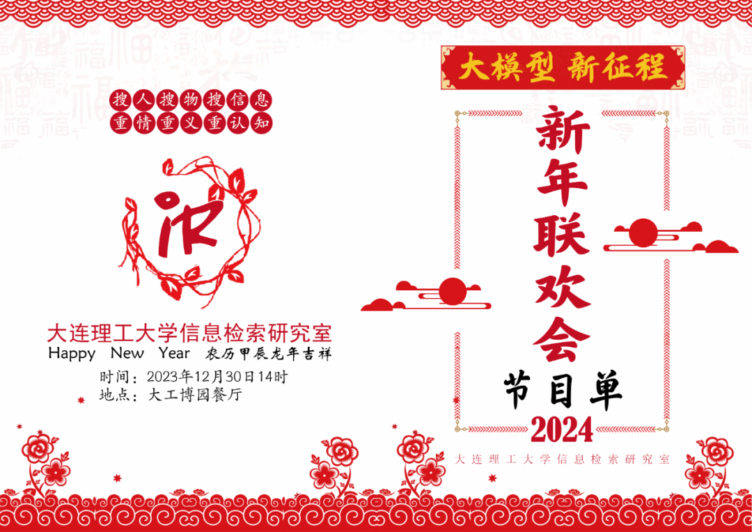 2023年12月30日,实验室在博留餐厅三楼举行2024年新年联欢会,实验室师生以及毕业校友共计百余人参加。这是历经三年疫情之后的线下师生联欢盛会。今年的主题是“大模型、新征程”,意味着新岁序开,同赴新程。
