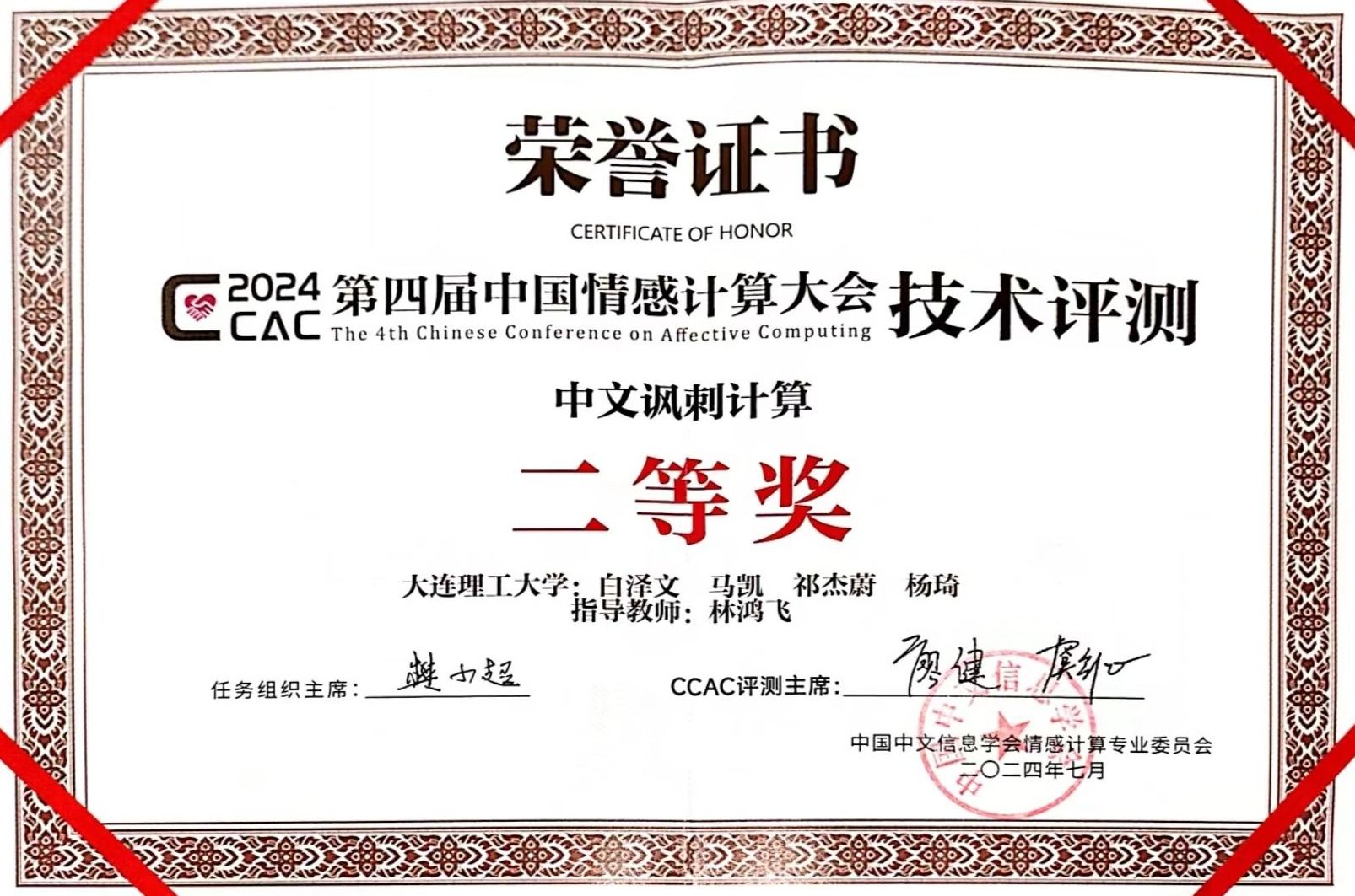 (3)白泽文、马凯、祁杰蔚、杨琦,获得赛道五“中文讽刺计算”二等奖