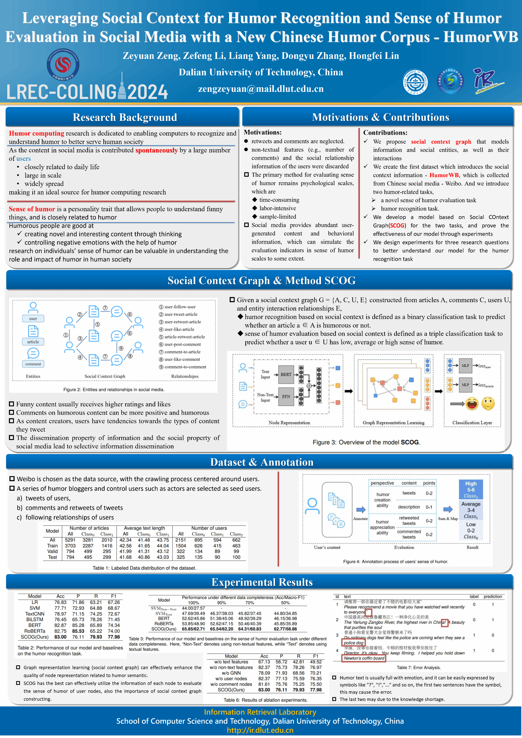 (3)曾泽渊的COLING2024的工作:“Leveraging Social Context for Humor Recognition and Sense of Humor Evaluation in Social Media with a New Chinese Humor Corpus - HumorWB