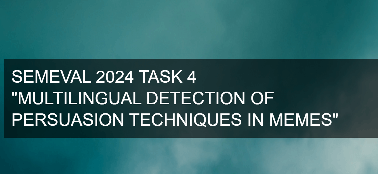 2024年6月,第18届国际语义评估研讨会 SemEval 2024在墨西哥举办。期间,组委会揭晓了今年SemEval的评测结果,实验室由李诗怡、李岱霖、王楚涵、邹鑫同学组成的两支参赛队伍,在实验室老师们的指导下分别在Task 4:Multilingual Detection of Persuasion Techniques in Memes(多语言模因中说服技巧的检测)中的Subtask 1和Subtask 2b两个赛道荣获第一名的优秀成绩。