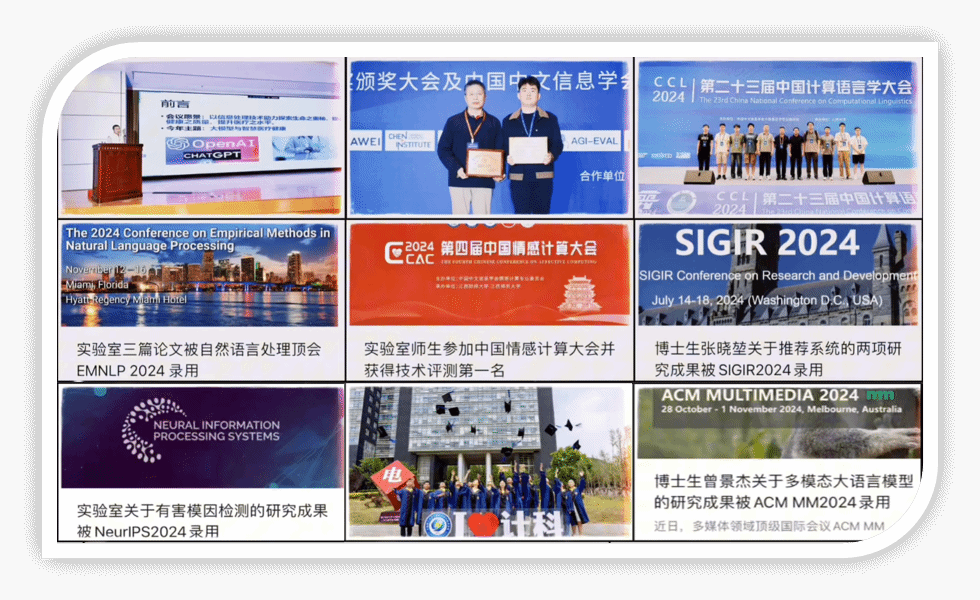 在SIGIR、NeurlPS、MM、IJCAI、EMNLP、CIKM、COLING、ICASSP、BIBM等国际顶级会议上和顶级期刊PR、TNNLS、TASLP、IP&M、Bioinformatics上发表或录用论文近30篇。生物医学大模型“太一”的研究成果被JAMIA发表,并荣获ESI高被引论文和期刊Featured论文的殊荣。