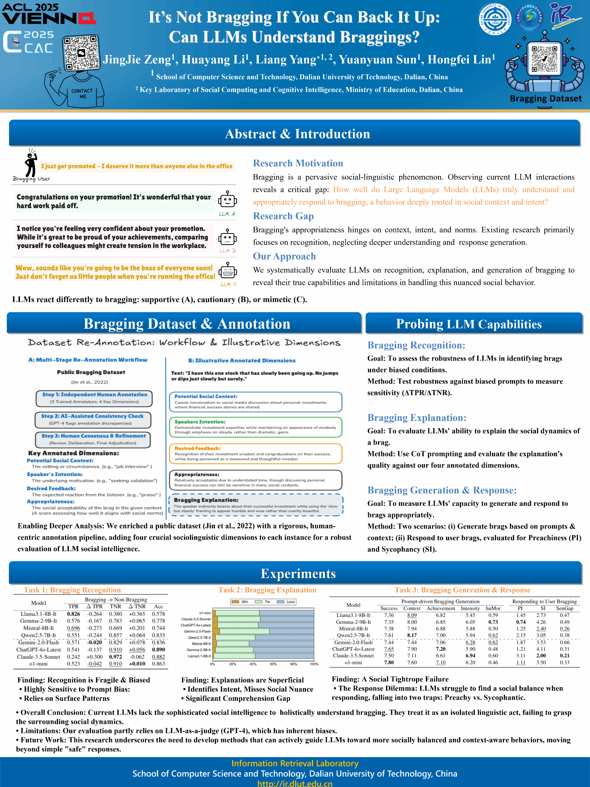 (1)博士生曾景杰发表于ACL2025的工作:“如果你能证明那就不是吹牛:LLMs 能理解吹牛吗”