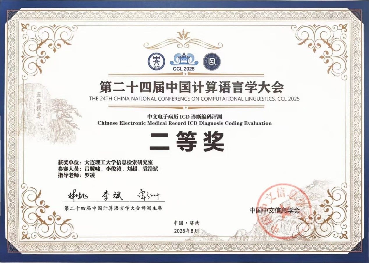 (1) 吕腾啸,李俊涛,刘超,袁浩斌同学获得任务8“中文电子病历ICD诊断编码评测”二等奖。