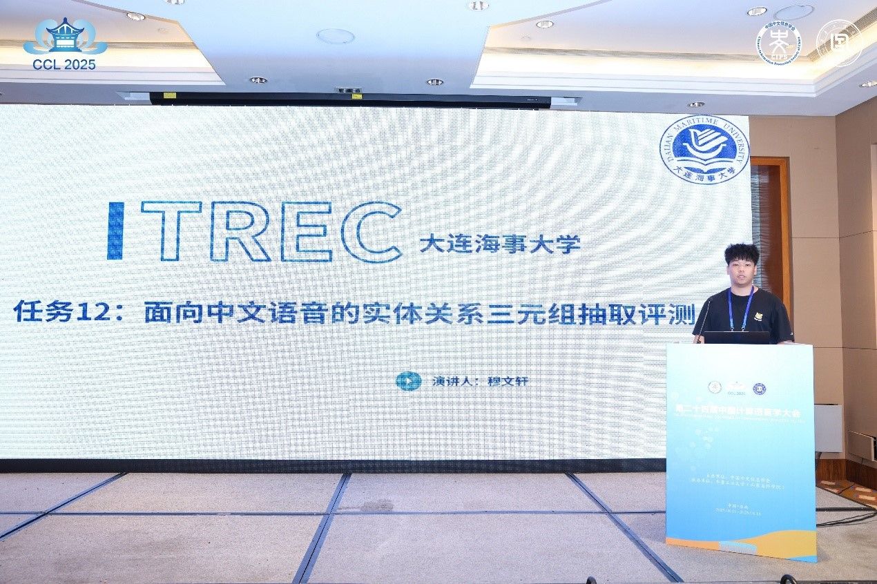 硕士生穆文轩在评测任务论坛作任务12评测总结报告并主持颁奖仪式。