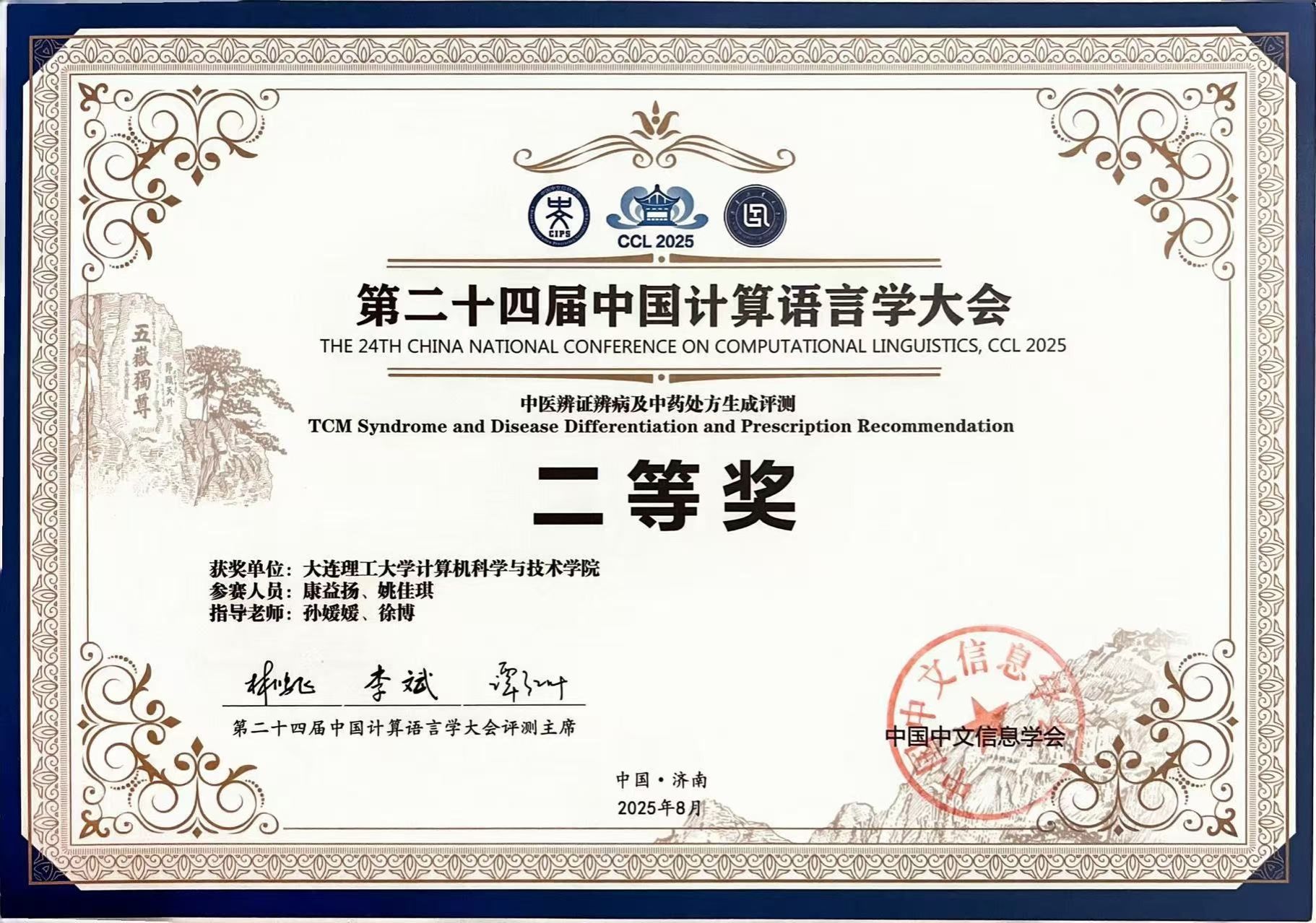 (2) 康益扬、姚佳琪同学获得任务9“中医辩证辨病及中药处方生成评测”二等奖。