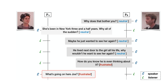 会话中的情绪检测是许多应用的必要步骤,包括对聊天历史的意见挖掘、社交媒体线程、辩论、论证挖掘、理解现场对话中的消费者反馈等等。目前的系统并没有通过适应每个话语的说话者来单独处理对话中的各方。在本文中,我们描述了一种基于递归神经网络的新方法,该方法在整个对话过程中跟踪各个当事人的状态,并使用这些信息进行情绪分类。我们的模型在两个不同的数据集上以明显的优势胜过最先进的方法。