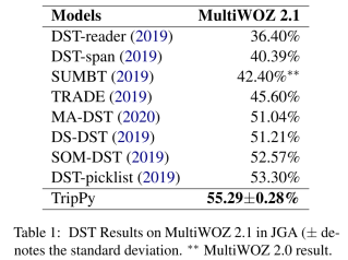 作者称这种方法为TripPy,即三重拷贝策略DST。实验结果表明,作者的模型在测试期间能够很好地处理词汇量不足和罕见值,具有良好的泛化能力。在详细的分析中,作者将仔细查看每个模型的组件,以研究它们的特定角色。
