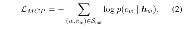 ),将其输入MLM的头,输出在整个语料库的词汇 V 上的概率分布,显示每个单词