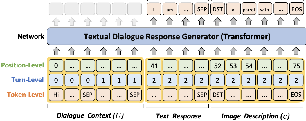 其模型结构和文本对话回复生成器一样,其中图像的标记可定义为: