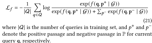 对 MSMARCO 语料库进行持续的预训练,以预热 GMN 模块的参数。将掩蔽语言模型 (MLM) 和句子关系预测 (SRP) 作为 KERM 中的预训练任务。与传统的下一句预测 (NSP) 相比,SRP 的任务是预测给定句子是下一句、前一句关系还是与另一个句子没有关系。为了在预训练阶段整合知识,为每个句子对构建一个元图,并应用上面介绍的知识聚合过程。预训练损失定义为 :