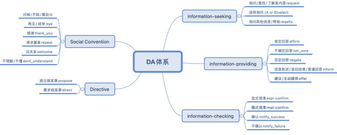 经过总结分析,我们从 ISO 国际对话动作标准 [25] 中归纳出了 20 个对于任务型对话最高频的对话动作集合(见图 6),并整理合并了现有的多个对话数据集,经过人工对齐删改后我们给出了目前最大的英文任务对话动作标注数据集 UniDA(一共 97 万轮次),同时我们也从各种公开论坛,开源 benchmark 等渠道收集处理得到了高质量的英文无标对话语料 UnDial (一共 3.5 千万轮次)。具体细节可参考论文 [1]。